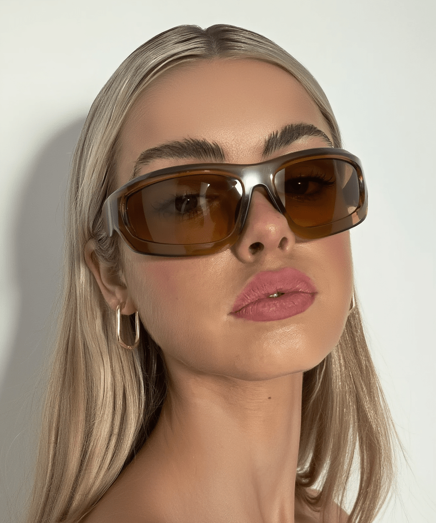 Women’s Wraparound Sunglasses – Caramel Brown Frame with Toffee-Tinted Lenses