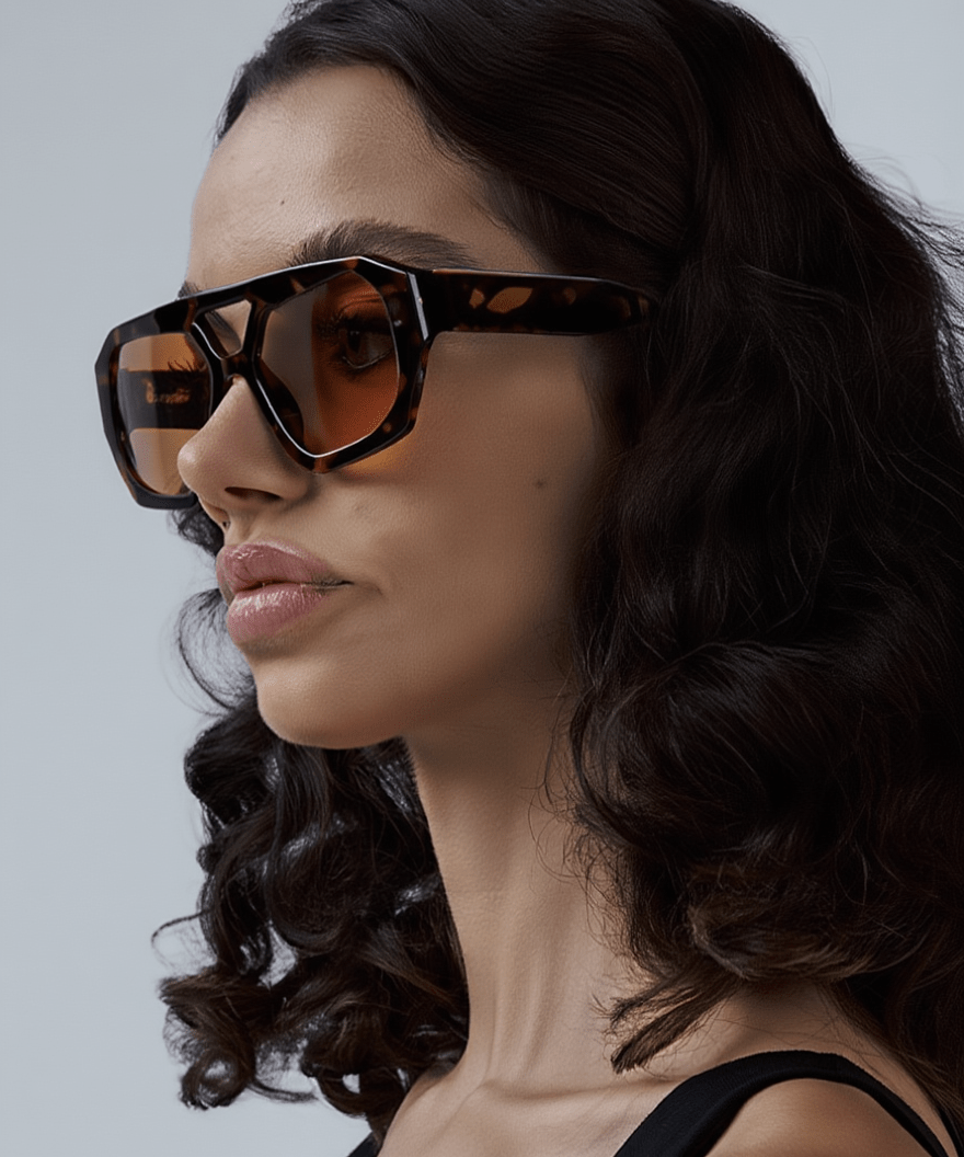 Women’s Octagonal Aviator Sunglasses – Chocolate Tortoise Frame with Cinnamon-Tinted Lenses