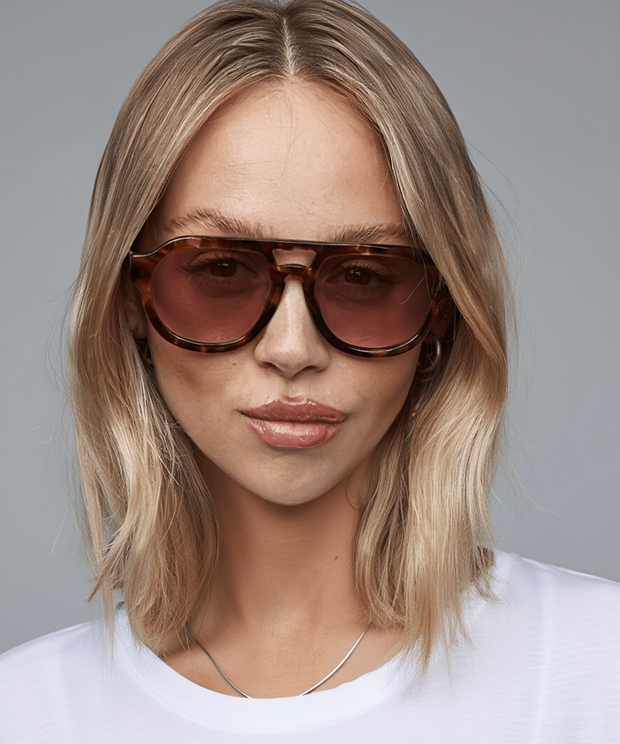 Women’s Aviator-Inspired Sunglasses – Tortoise Frame with Smoke-Tinted Lenses