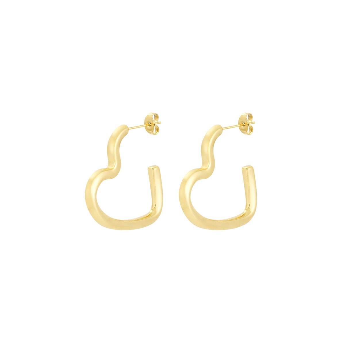 The Gold Open Heart Earrings are a celebration of clean lines and timeless sentiment. Featuring a sleek, open-heart silhouette in a high-polish 18K gold tone, these earrings offer a sophisticated and unique aesthetic that enhances your natural grace with effortless ease.