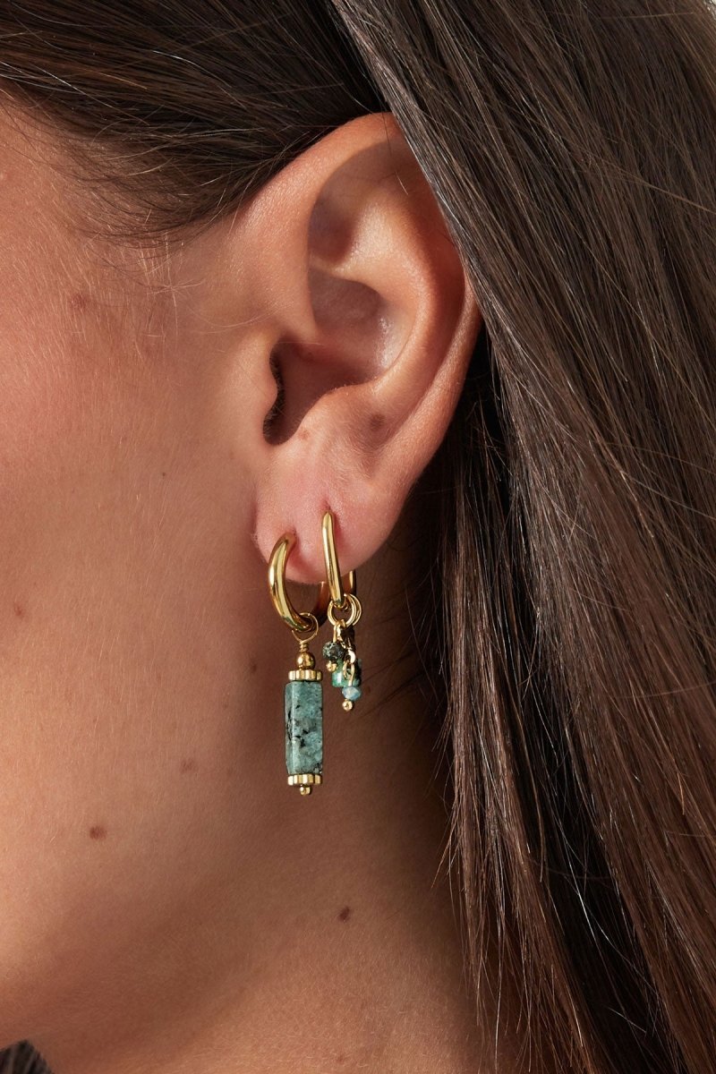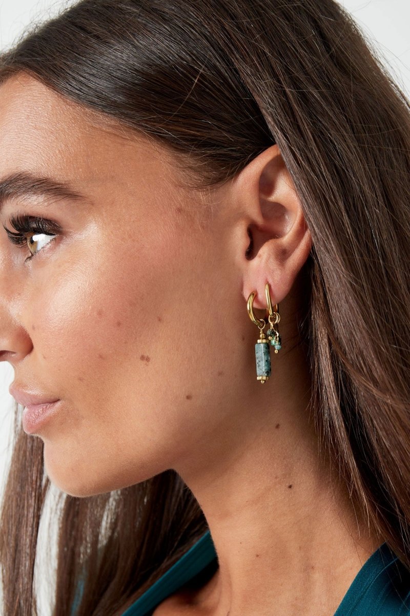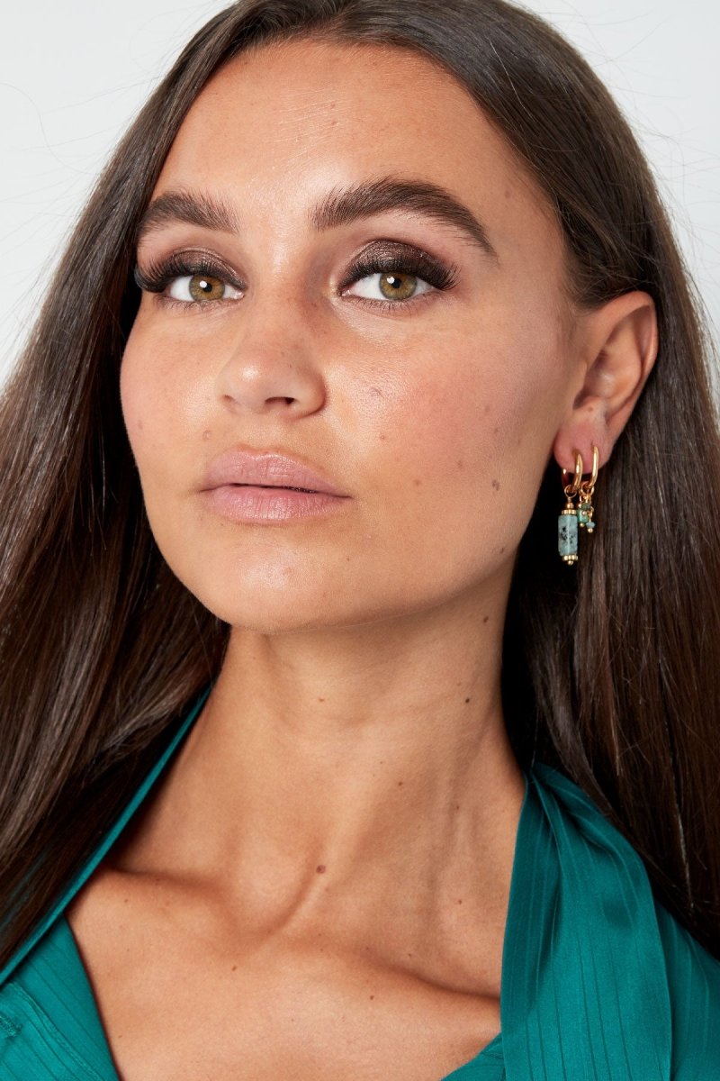 The Gold Rectangular Beige Marble Stone Earrings are a tribute to the raw elegance of natural materials. Featuring smooth, beige marble-inspired stones set within a polished 18K gold tone frame, these earrings evoke a sense of timeless European heritage. Each pair offers a unique, organic narrative, making them a masterclass in "Quiet Luxury"—understated, refined, and undeniably chic.
