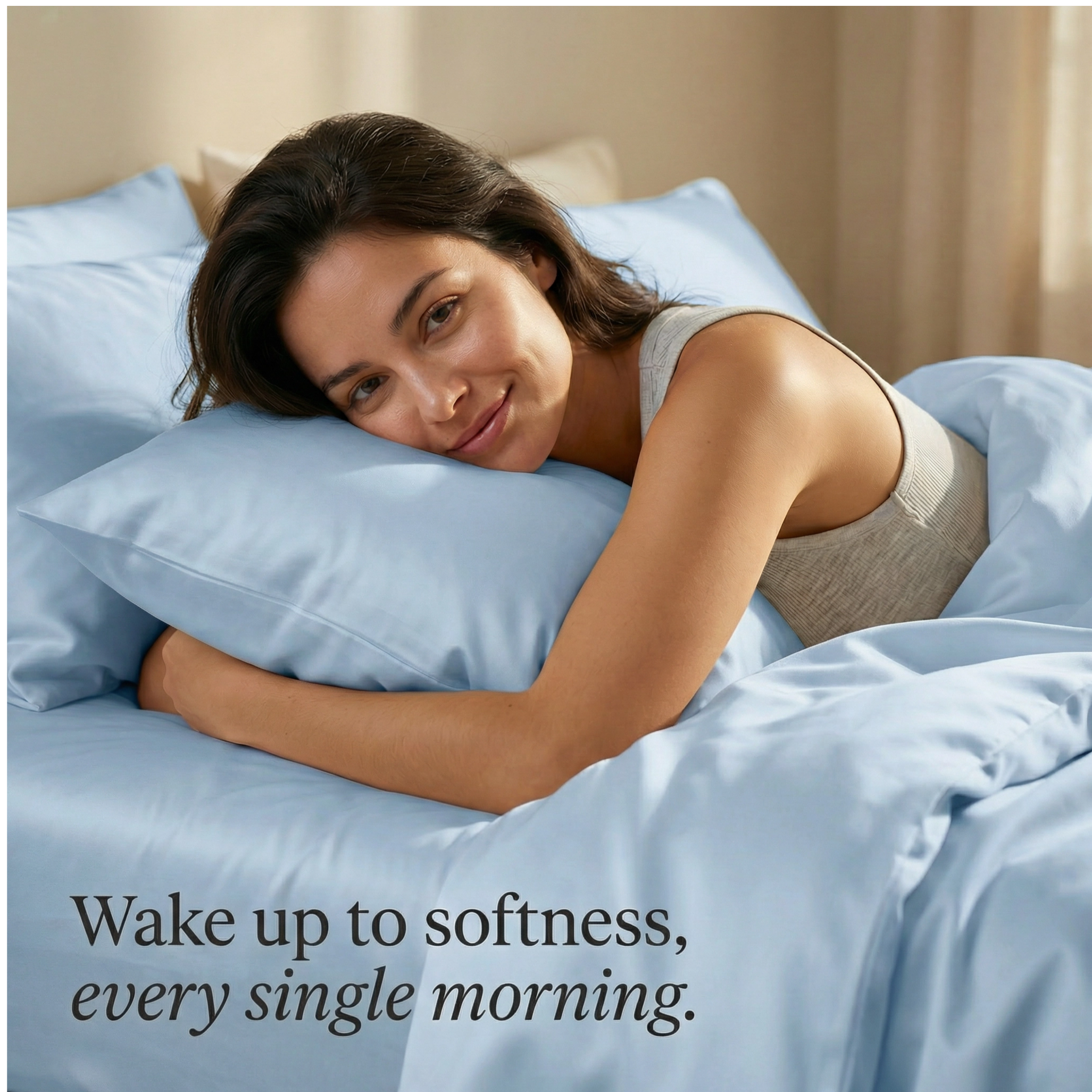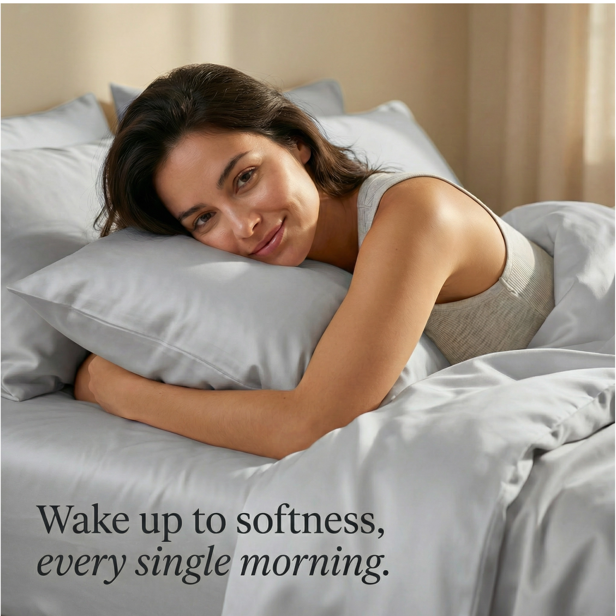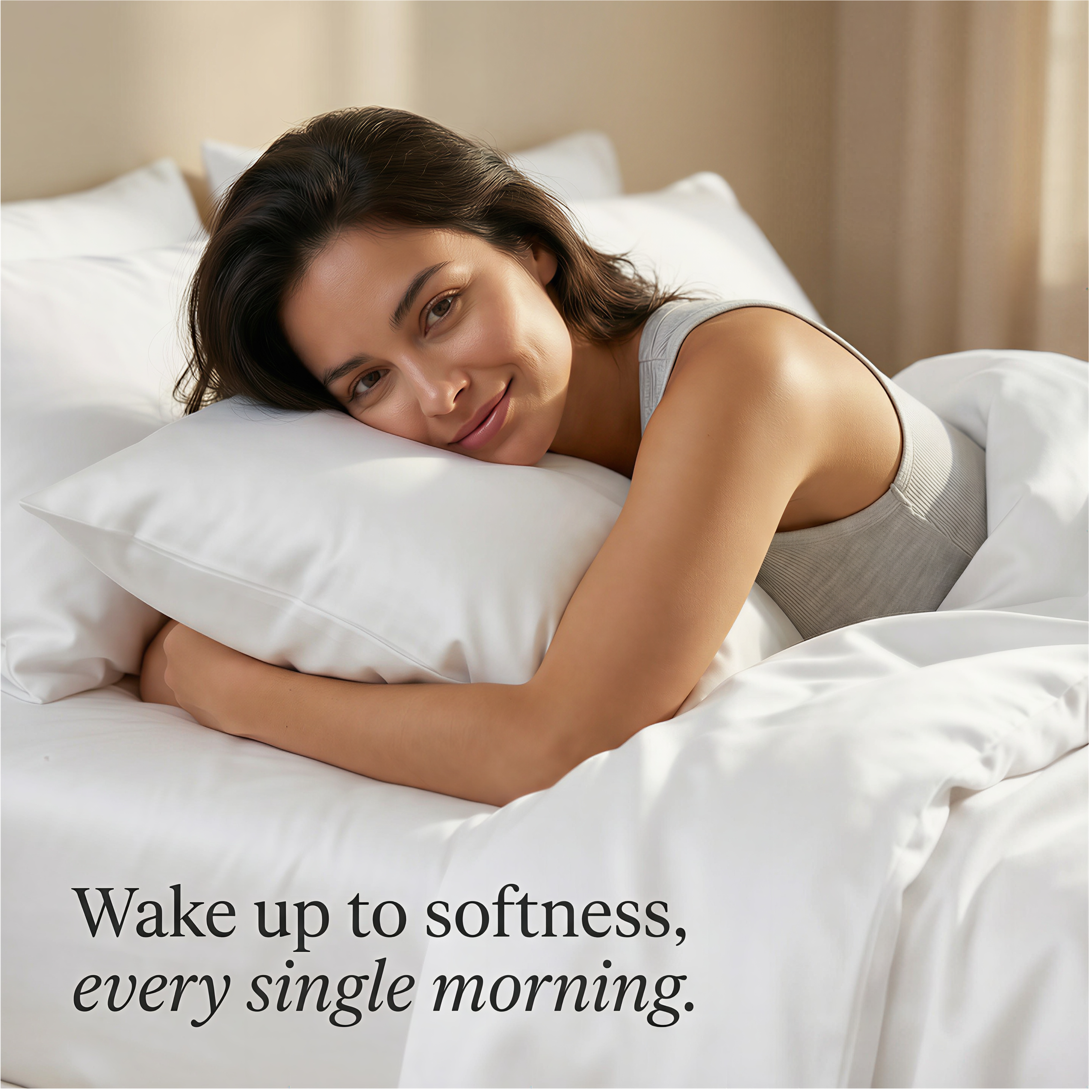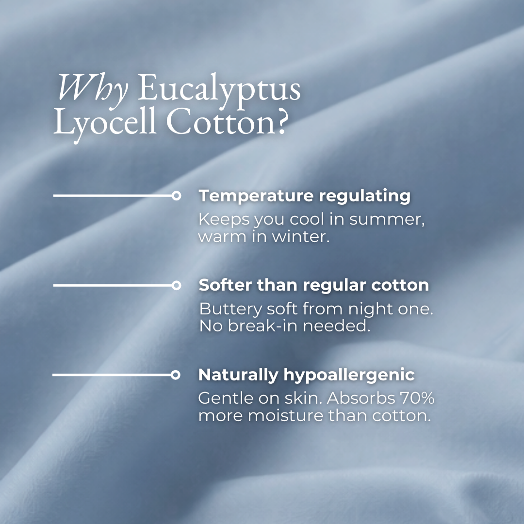 We took everything you love about a great hotel stay — the crisp sheets, the cloud-soft duvet, the feeling of pure comfort — and made it yours, every night. Made from 100% Eucalyptus Lyocell. Soft, breathable, and built to last.