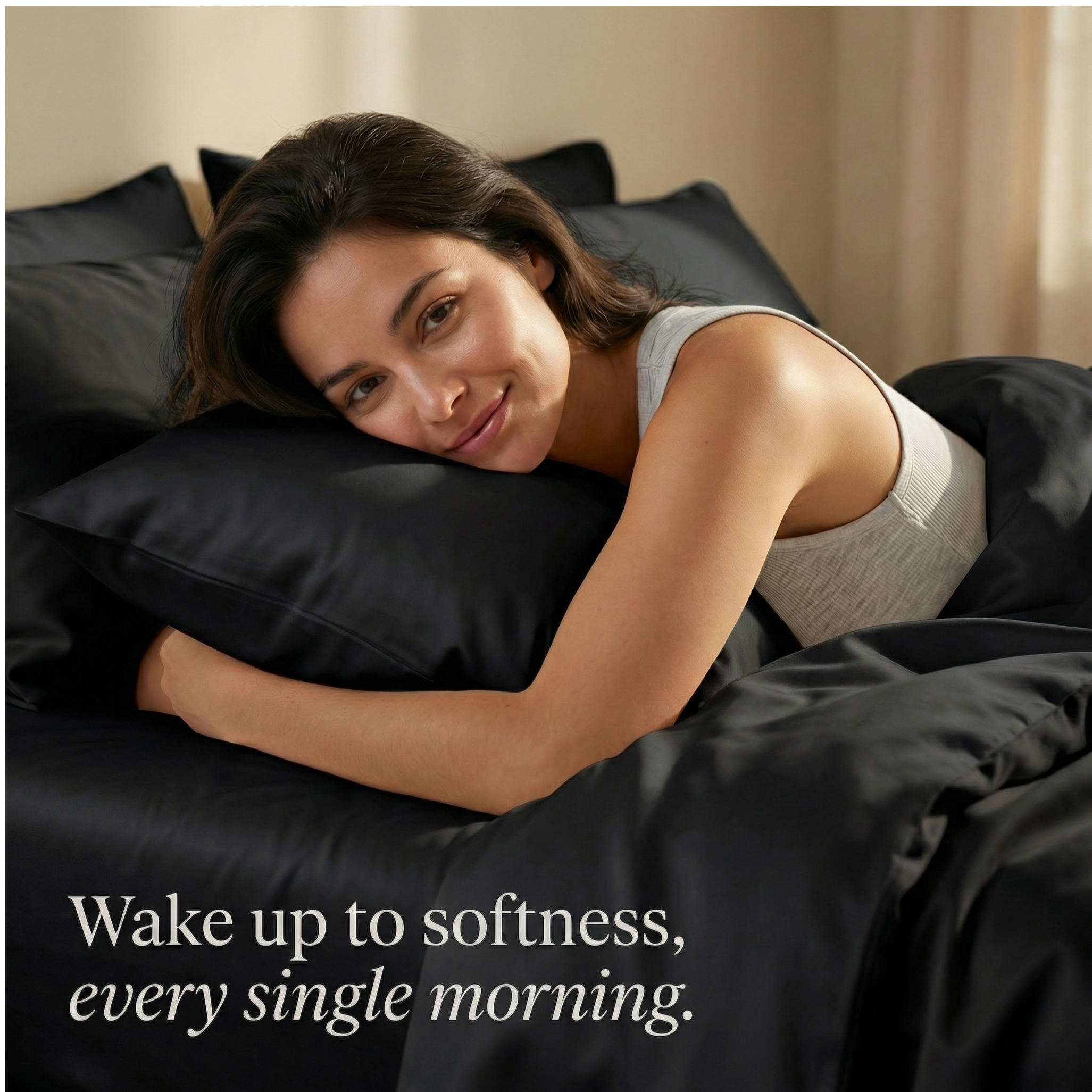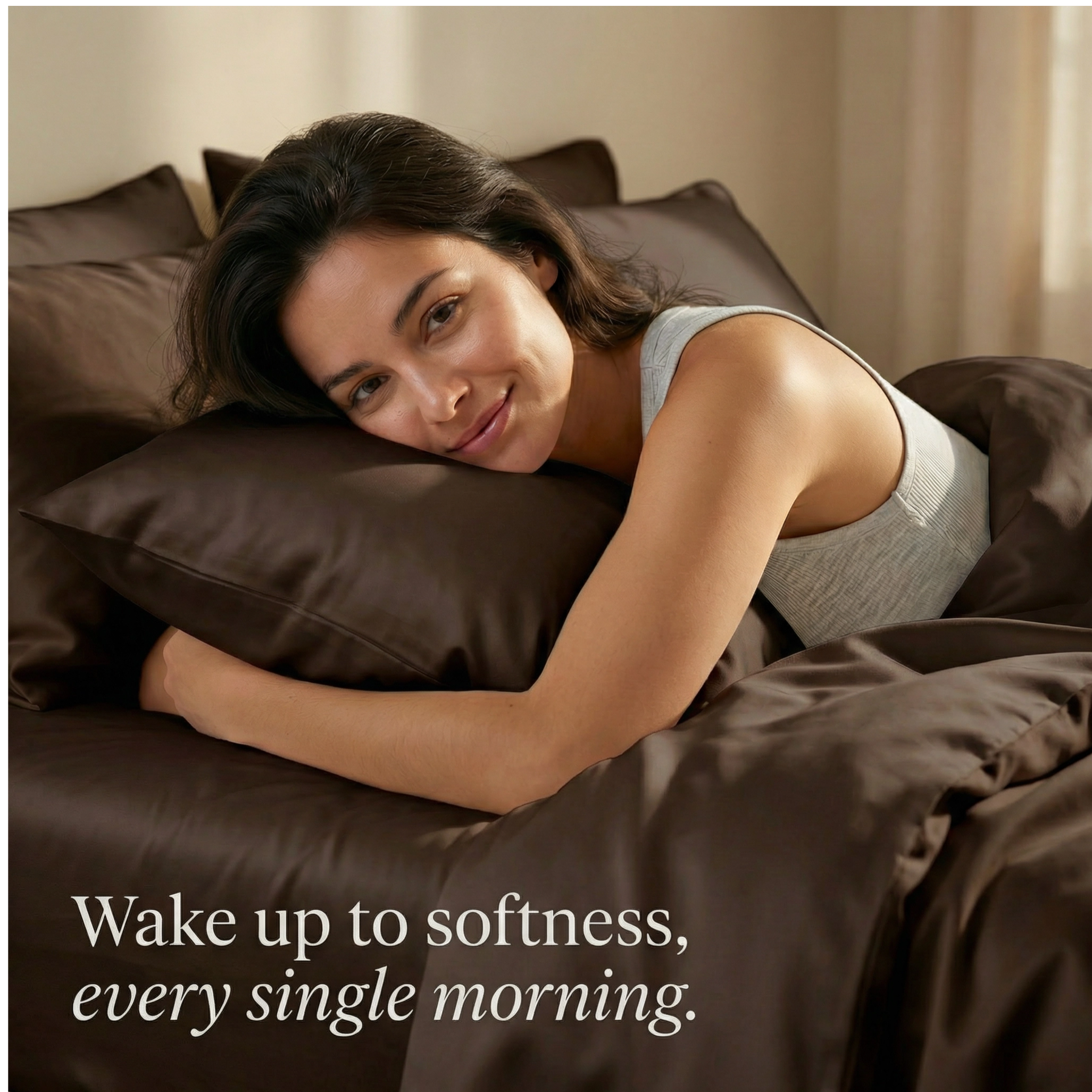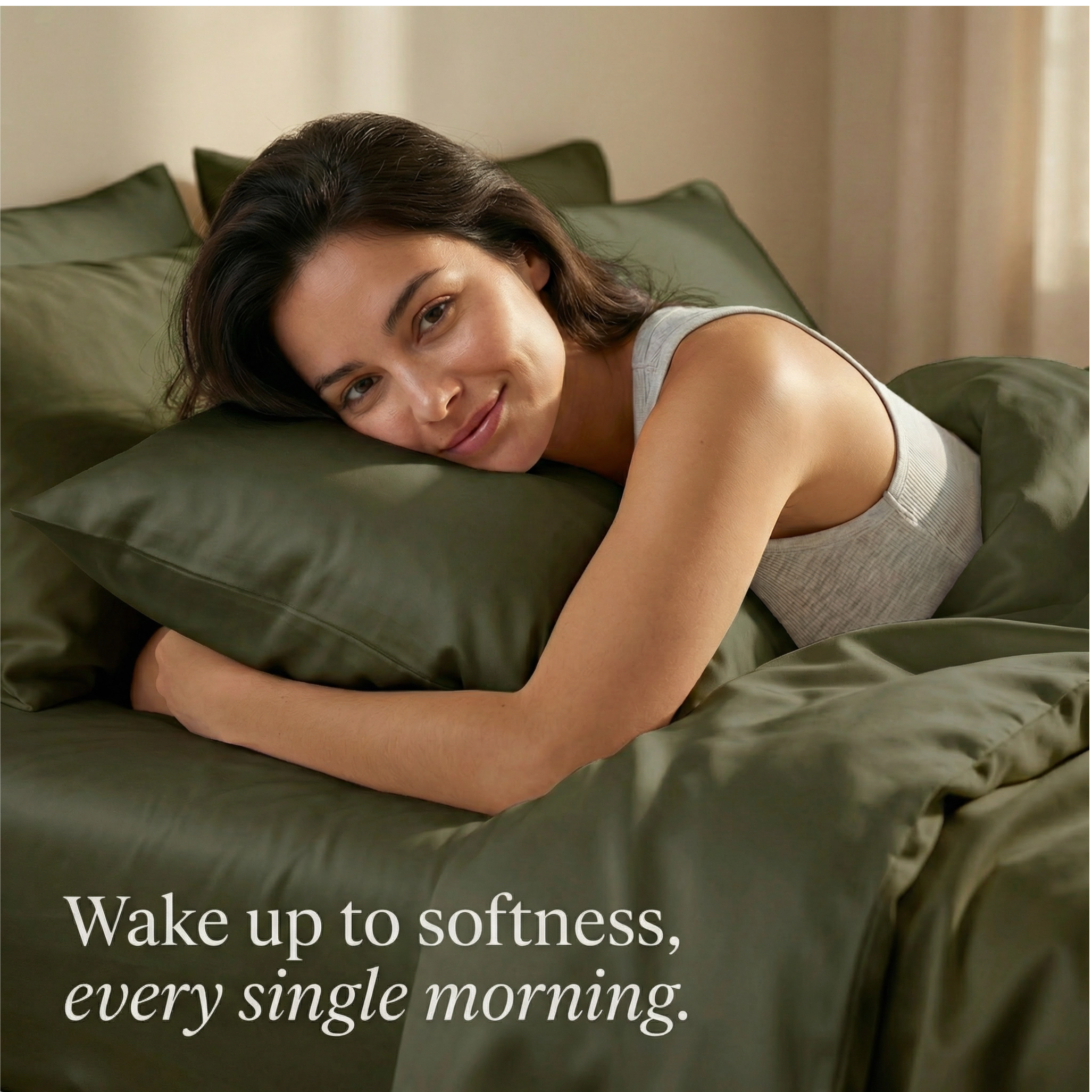 We took everything you love about a great hotel stay — the crisp sheets, the cloud-soft duvet, the feeling of pure comfort — and made it yours, every night. Made from 100% Eucalyptus Lyocell. Soft, breathable, and built to last.